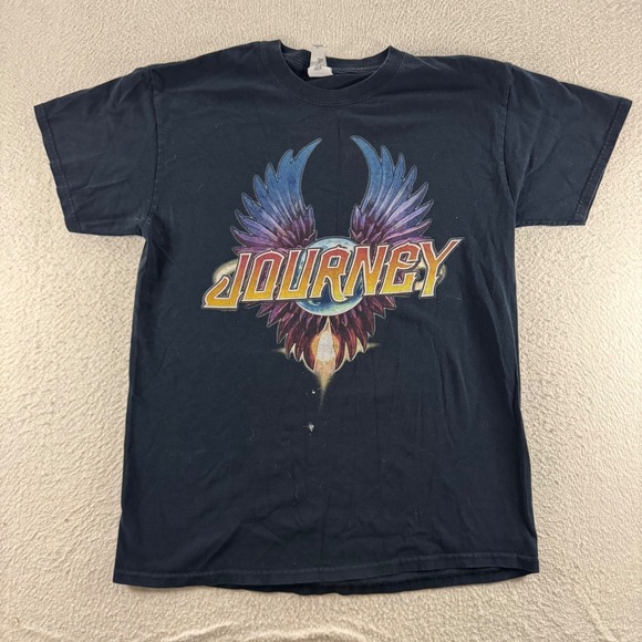 Rock out in this epic Journey San Francisco Fest 2016 tour t-shirt. The iconic Journey logo with vibrant wings and earth graphic pops on the front, while the back lists all the tour stops for an authentic vintage feel. Crafted from comfortable Gildan Heavy Cotton, this shirt promises lasting quality and a soft feel against your skin, perfect for channeling your inner rock star. Wear it to a concert, a casual day out, or to relive your favorite music memories.