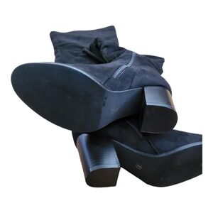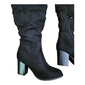 new without box. super cute knee high boos. the fabric is scrunched on leg part. nice and soft. keep is 3". perfect for fall and winter. dress them up or down