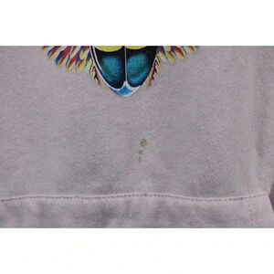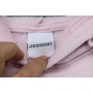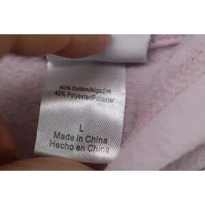 This is a Women's Journey Hoodie that is a size Large. It has a stain on the front(see Pics). I tried to get it out but it is stubborn! I adjusted the price because of it. Still a great hoodie to kick around in. It is 60% Cotton and 40% Polyester.