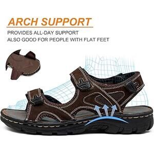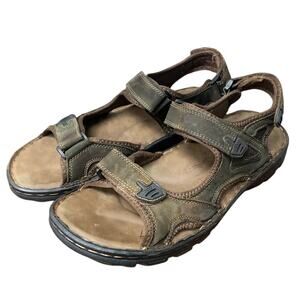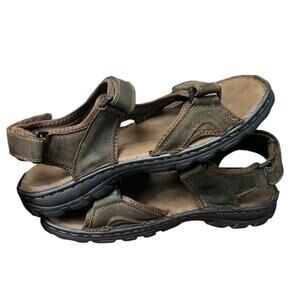 Jousen Mens 13 Brown Sandals Faux Leather Open Toe Hook Loop & Fastener Shoes