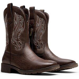Side Zipper:There is a specially designed zipper on the inside of those boots for men. When you want to put on or take off the cowboy boots, just unzip the zipper, and it will be very easy to slip them on and off. Square Toe:These western boots men feature a square toe design, which is not only classic and stylish but also provides more space for the front part of your feet from an anatomical perspective. This means your feet won't feel cramped. Standard Size:Those mens cowboy boots use standard US sizing. You can feel free to choose the size you usually wear. Comfortable Insole: Those botas para hombre are equipped with an integrated, ergonomic memory foam insole. It is not only extremely comfortable but also provides adequate support for your feet.