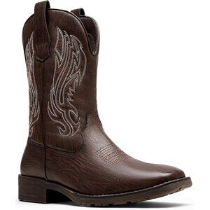 Jousen Mens Amy8420-darkbrown Embroidery Retro Square Toe Chunky Heeled Boots