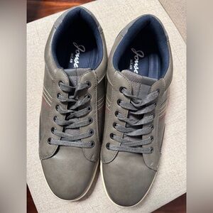 Stylish gray leather men's sneakers with a sleek design. Perfect for casual outings and everyday wear.