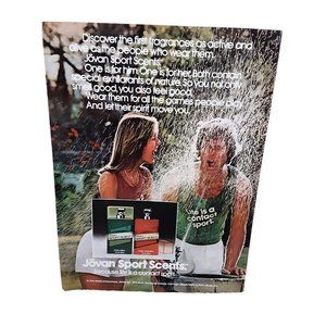 Jovan Sport Scents print ad. Original ad cut from a 1979 magazine. Measures approx 8x10. Good to better vintage condition. Would make a great addition to your vintage collection.