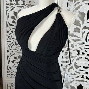 Jovani 02543 Ruched One Shoulder Formal Dress Black