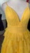 Elevate your prom night with this stunning Jovani 08480 Yellow Tulle Tiered Skirt Prom Gown. This sleeveless bodice yellow dress features delicate spaghetti straps, a flattering V-neckline, and an open-back design that exudes elegance and sophistication. The pleated tulle gown features a high waist and a flowing A-line layered skirt that cascades beautifully to the floor, giving you a breezy and relaxed look.