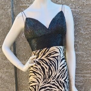 Jovani 100% Silk Heavy Beaded Zebra Print Gown Beautiful