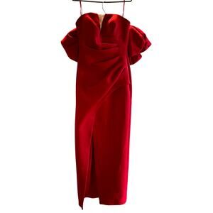 This gown is a showstopper for formal galas, weddings, or red-carpet-style events. The rich red hue and structured pleating make it timeless yet bold. Style it with nude or metallic heels and a minimalist clutch for an effortlessly glamorous look. Ships fast from a smoke-free home.