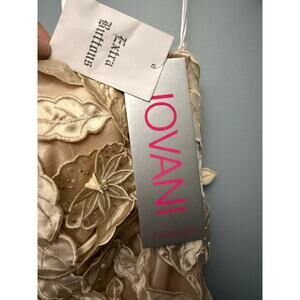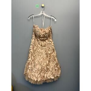 Amazing vintage gem! NWT Jovani strapless cocktail dress in café/nude with 3D floral appliqué and tulle hem. Built-in structure, back zip. Extra buttons attached. Perfect for prom, homecoming, parties—strong Y2K/2010s vibe.