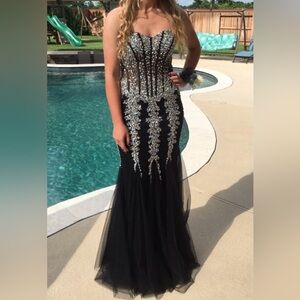 Jovani 5908 Size 6 Strapless Sweetheart Corset Bodice Mermaid Formal Dress Black