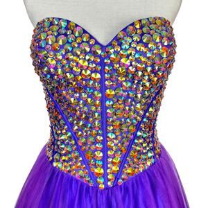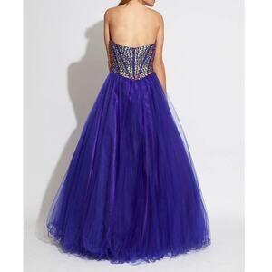 Jovani 90131 Purple Tulle Gem Embellished Corset Strapless Ball Gown Prom Dress