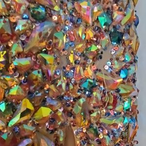 I wore this beautiful dress for my prom, and have never worn it again. The dress is a size 2 and fits true to size. Due to the nature of the dress, there are a few areas after wearing it once where the gems loosened (see pictures), but these can be tacked on with fabric glue or handsewn back in place. I also have the extra gems that came with the dress included. The dress was tailored too so that the train can be hooked higher for dancing, and thin nude/beige straps have been added. The dress was originally $900, but I got it on sale for $600. Due to the few loose gems, I'm asking a very fair price under 50% of what I paid. You'll absolutely love this dress!