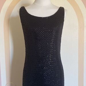 Fitted Stretch Polyester with Black Sequins and beading throughout