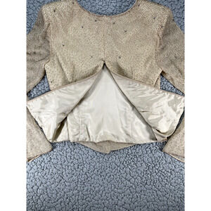 Jovani Blouse Womens Size 6P Silk Sequins Vintage Gatsby Padded Shoulders