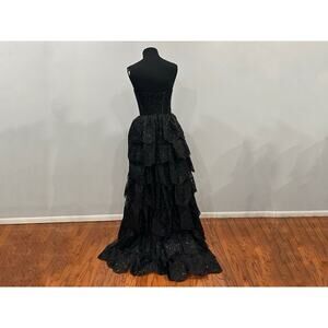 Jovani Embroidered Tiered Ballgown with Slit in black Sz 6 NEW