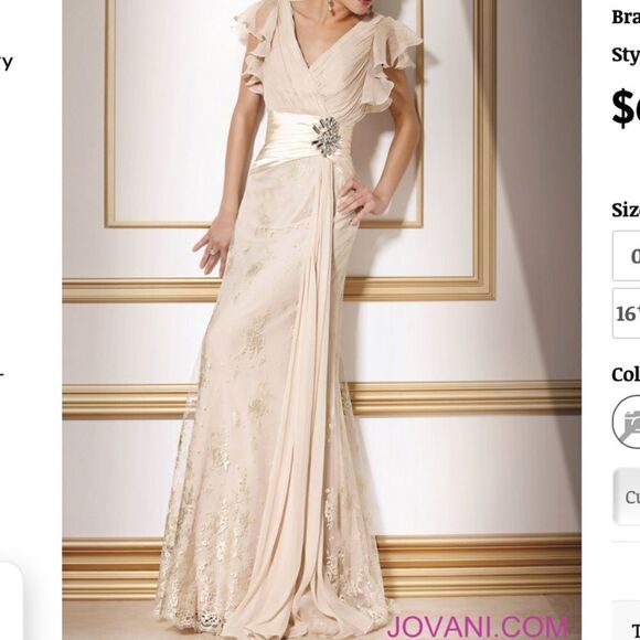 Jovani Evenings Cream Evening Gown with Belt Size 16