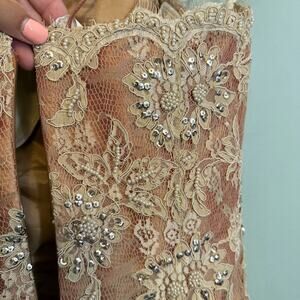 Jovani Floral Lace Evening Ball Gown Dress Prom Formal Sequin Beaded 12 Beige
