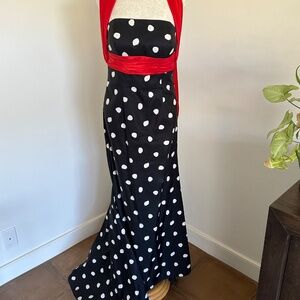 Was slightly altered so it fits an 8-10 body. Has built in cups. So gorgeous on and you can change the sash to be worn in many ways. Absolutely stunning.