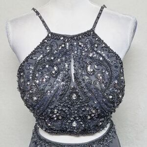 Jovani Gray Beaded Sequin Chiffon Two-Piece Maxi Dress 33848