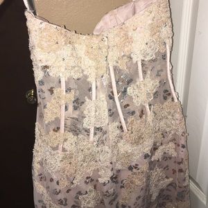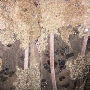 only worn once, supportive chest, padding chest, peachy/tan/pink/silver/gold
