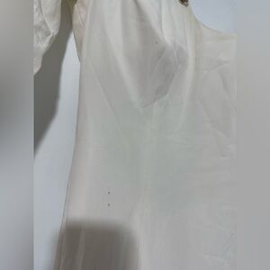 Condition: Fair. The dress has visible staining on the hemline, discoloration on the sleeves and body, and a few marks throughout the fabric. The collar is intact but shows signs of wear. Priced accordingly.
