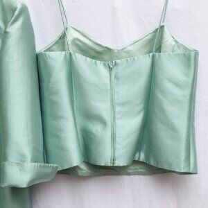 Jovani NY 3 Pc Silk Wool Set 18M Aquamarine Blazer Tank Lace Skirt Beaded NWT