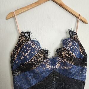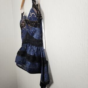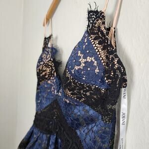 Jovani Navy Black Floral Lace Peplum Camisole Top 10 NWT