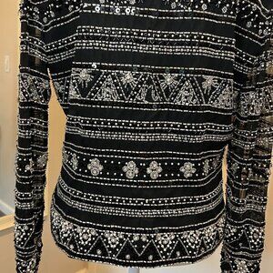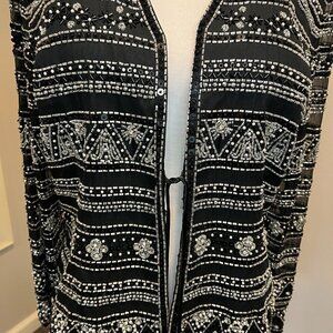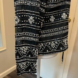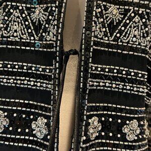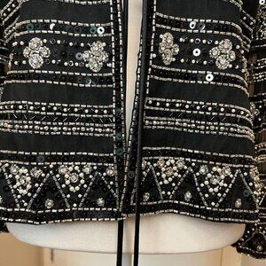 Jovani New York 100% Silk Black Beaded Formal Jacket with tie front, Size M/L?