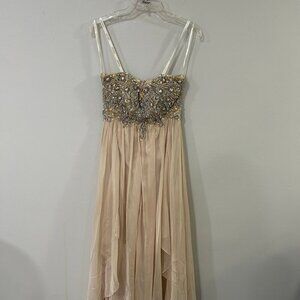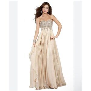 Jovani Nude Tiered Strapless Sequin Sweetheart Neckline Maxi Prom Dress Size 6
