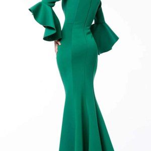 Jovani Off Shoulder Bell Sleeve Mermaid Gown – emerald green size 2