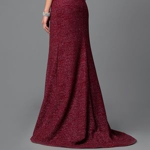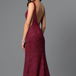 Structured yet sexy, the Jovani 45811 is the perfect way to show off your back, and sides. The plunging V-neckline and cutouts on the sides feature a sheer nude overlay for coverage. The soft glitter jersey fabric glides over your curves and around the open back. The trumpet skirt with a sweep train will shimmer on the dance floor, as you twirl the night away.
