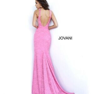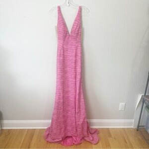 Jovani Royal V Neck Fitted Gown Dresss Hot Pink Metallic Shimmer Prom Wedding