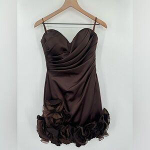 Jovani Satin Ruffle Mini Dress Evening Prom Formal Cocktail - Brown - Size 6