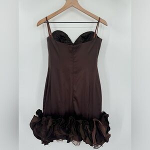 Jovani Satin Ruffle Evening Dress - Cocoa Brown - Women's Size 6