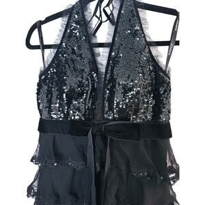 Jovani Sequin Beaded Tiered Halter Gown Dress 6 Black