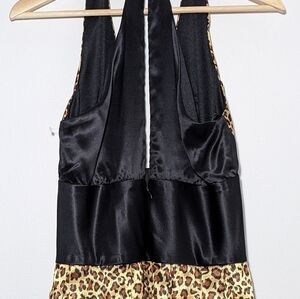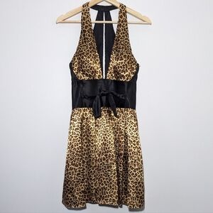 Jovani Silk Mini Dress Deep Plunging V Neck Cheetah Animal Print Black Y2K Vintage Size 6