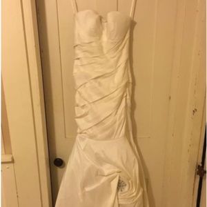 Jovani Size 2 White mermaid Evening gown. Never worn. Slight rhinestone embellishment on bottom of train.