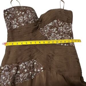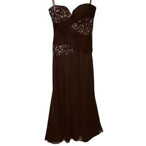 Jovani Strapless Pleated Sequence Full Length Evening Prom Gown Brown (16)