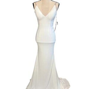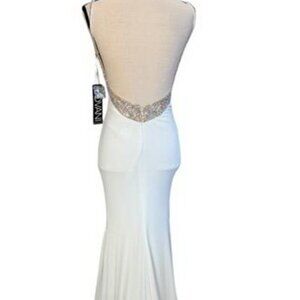 Jovani White Open Embellished Back Plunging V-Neck Dress