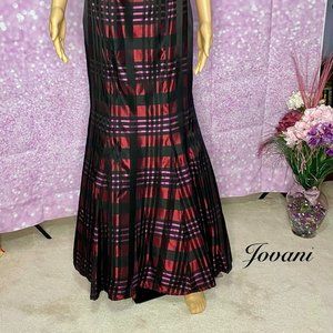Darling Jovani formal great for PROM, pageants, wedding or other formal occasion. It has been hemmed for a 5'2" girl wearing 4" heels. This dress has been worn once for a pageant. Colors are predominantly red, pink and black. This is a stand out formal from the colors to the style. Includes wrap.