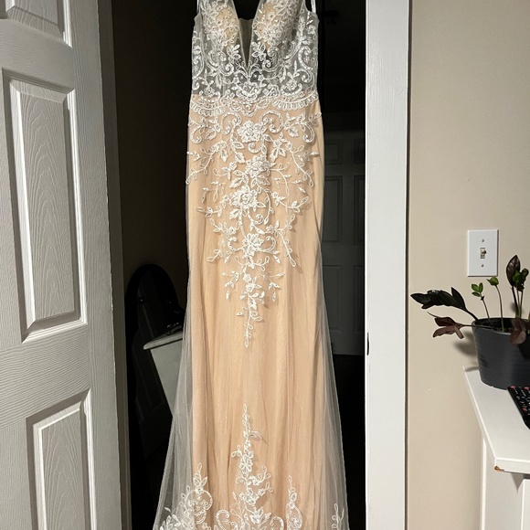 Size 6,beautiful embellished gown. New without tags. White with nude lining