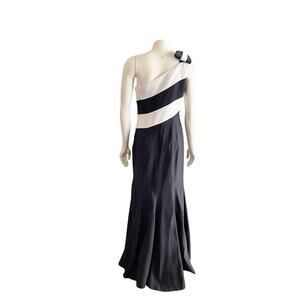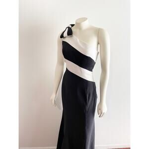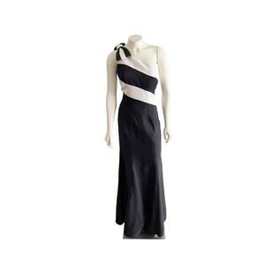 Jovani one shoulder black bow fit and Flare mermaid Dress Size 8