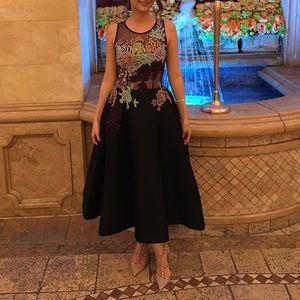 Jovani size zero elegant floral-embroidered black dress. Worn only once, great condition, perfect fit!