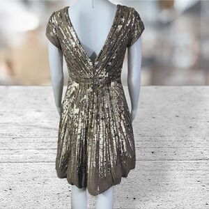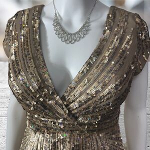 Jovani Gold Sequin V Neck Cap Sleeve Cocktail Dress