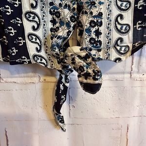 Jovie Front Tie Blue Paisley Button up V Neck Blouse