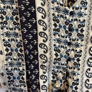 Elevate your wardrobe with this stunning Jovie Blue Paisley Tie Front Blouse. Crafted with high-quality materials, this blouse showcases a beautiful paisley pattern that will make you stand out from the crowd. The blouse features a tie closure which adds a touch of elegance to the overall design.