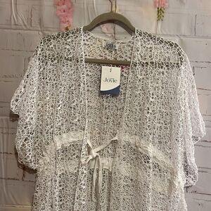 Jovie White Micro Lace Kimono Swimsuit Cover up with Drawstring Waist