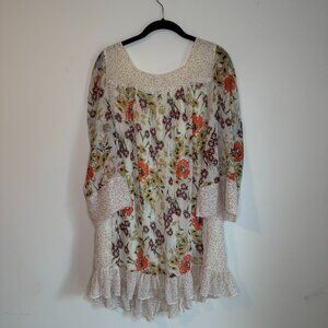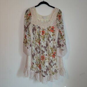 Jovovich Hawk for Target Tunic Dress Womens M White Floral Polka Dot Boho Fairy