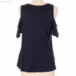 Jow Fresh Navy Blue Short Flutter Sleeve Cold Shoulder Top Women's Medium M