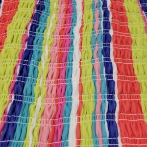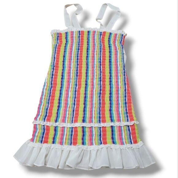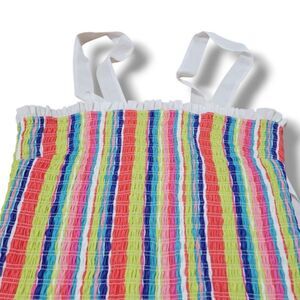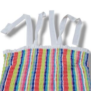 Joy & Ash Dress Size 1X Women's Plus Size Dress Ruffle Smocked Dress Sleeveless Women's Dress Smocking Dress Spaghetti Straps Adjustable Straps Multicolor Colorful Stripes Striped Dress No Pockets